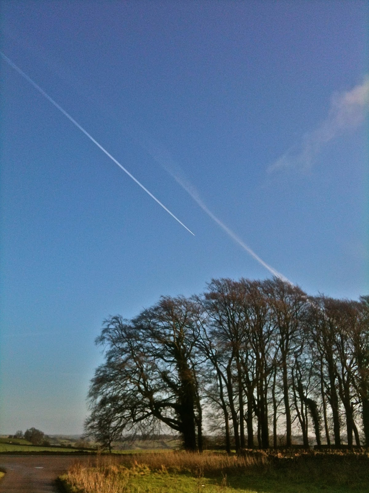 Coming back to the van, these vapour trails against this stand of trees appealed to me.