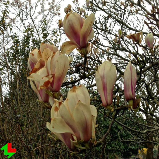 More magnolia blossom all on the way down to the garage to pick up the van - which is now legal for another year.